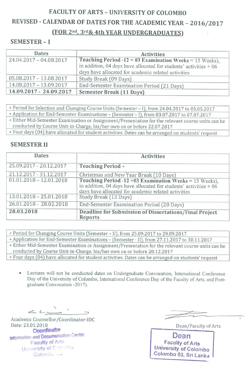 Academic Calendar - 2019 / 2020 - Revised