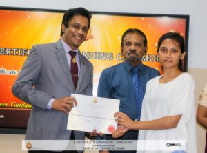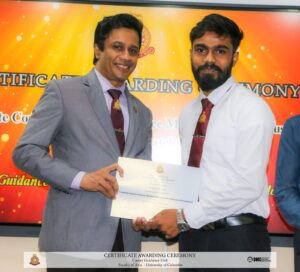 The Vice Chancellor of the University of Colombo, Professor Indika Mahesh Karunathilake, graced the occasion as the Chief Guest, while the Dean of the Faculty of Arts, Senior Professor Lasantha Manawadu, attended as the Guest of Honour. Other distinguished invitees included Professor D. L. P. M. Rathnasingha, Director of the Career Guidance Unit, Dr. Rushan Abeygunawardana, Senior Student Counsellor, Dr. U. T. G. Perera, Director of Undergraduate Studies, Ms. Chalika Thangaraja, Senior Lecturer and Acting Co-Director of the Career Guidance Unit, Faculty of Arts, Mr. T. Sureshkaanth, Senior Assistant Registrar, Heads of Departments of the Faculty of Arts, Senior Academics and Lecturers of both the Faculty of Arts and the Faculty of Management and Finance. The parents of the certificate recipients were also present at the event.