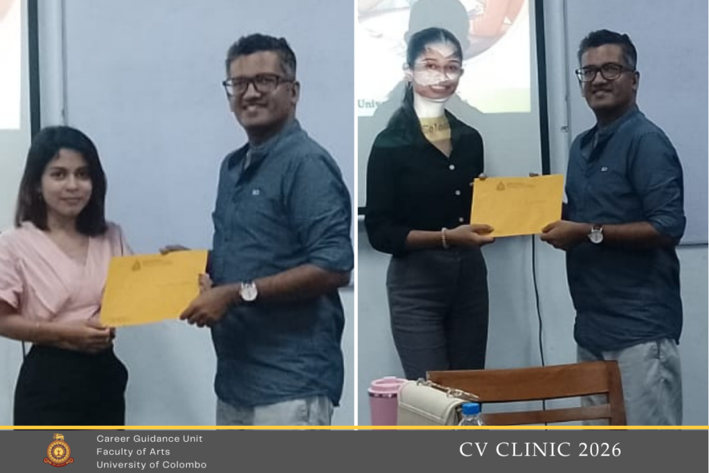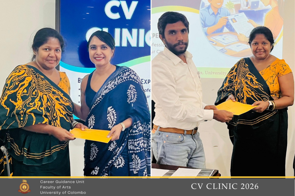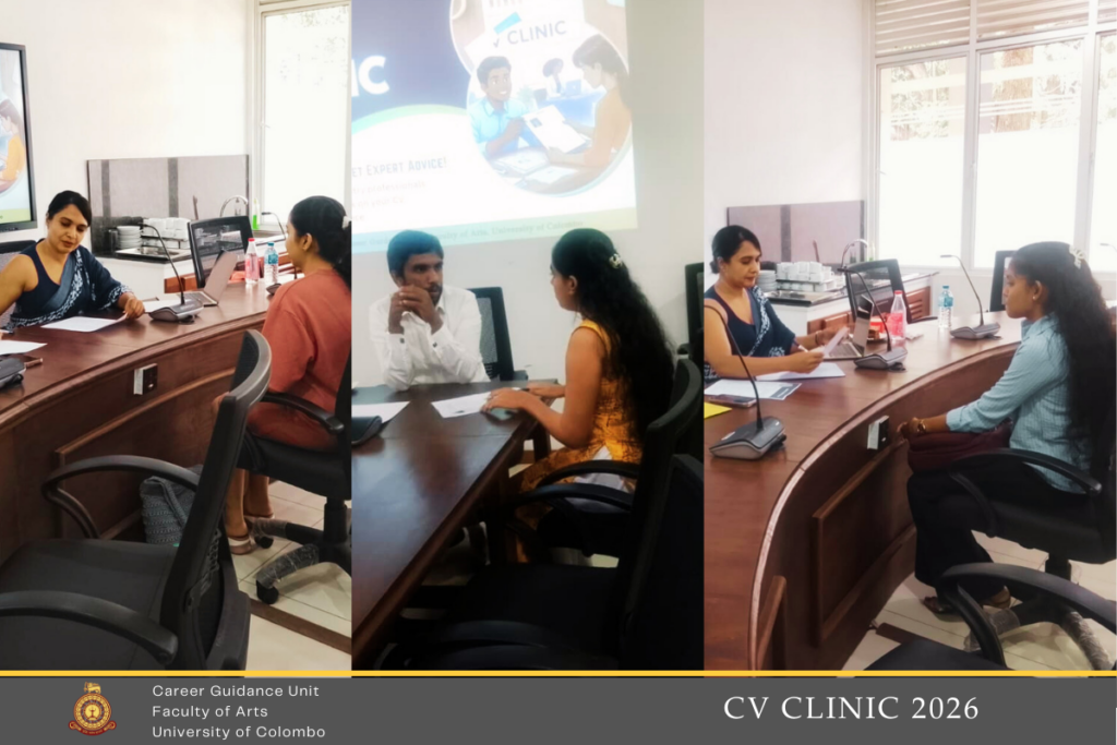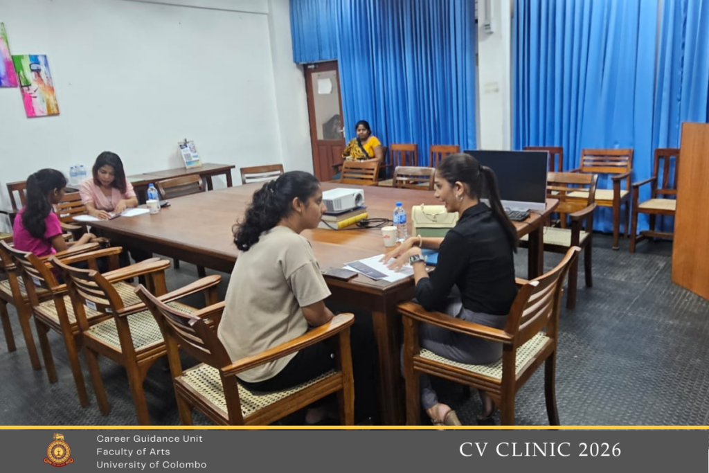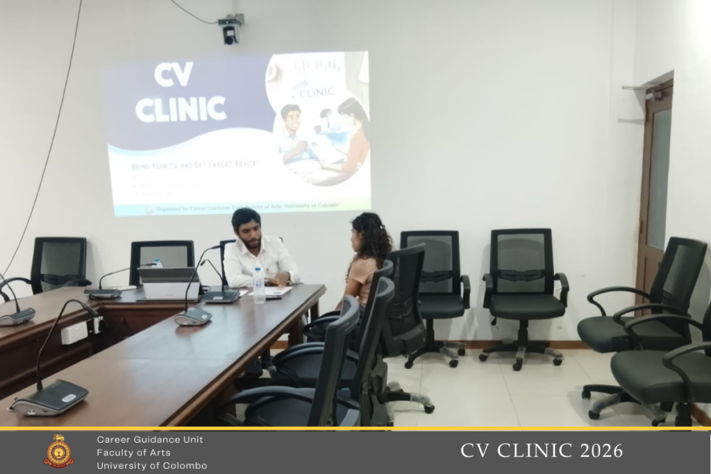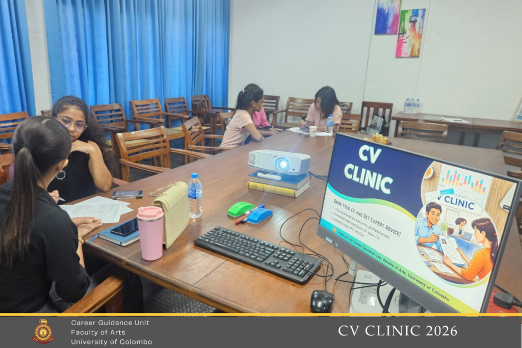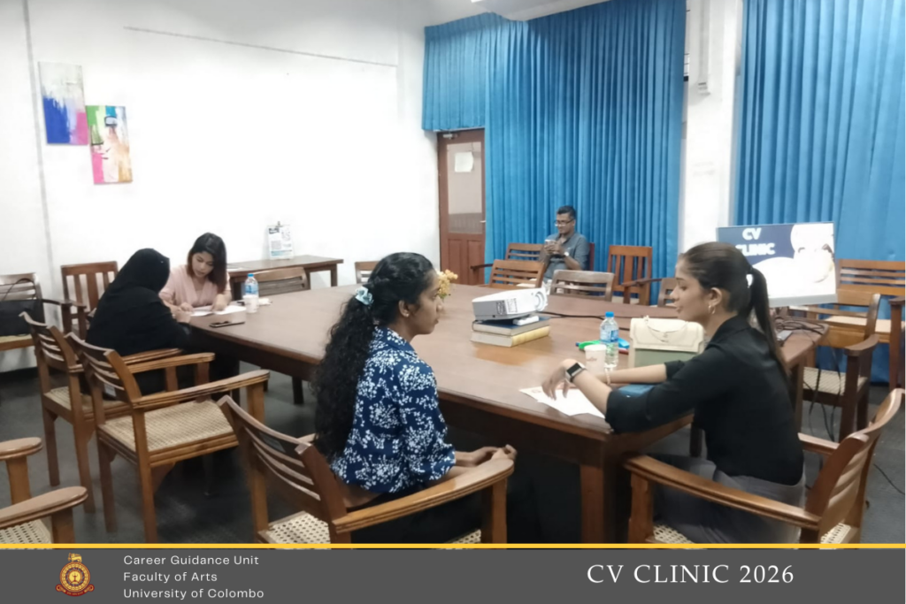 The Career Guidance Unit (CGU), Faculty of Arts, University of Colombo, successfully conducted a CV Clinic on 19 th February 2026 for the undergraduates of the Faculty of Arts. This programme, which was organized for the first time by the Unit as a concept of Dr. Shashini, was held in two sessions to accommodate the large number of interested participants and to ensure that each student received adequate individual attention.