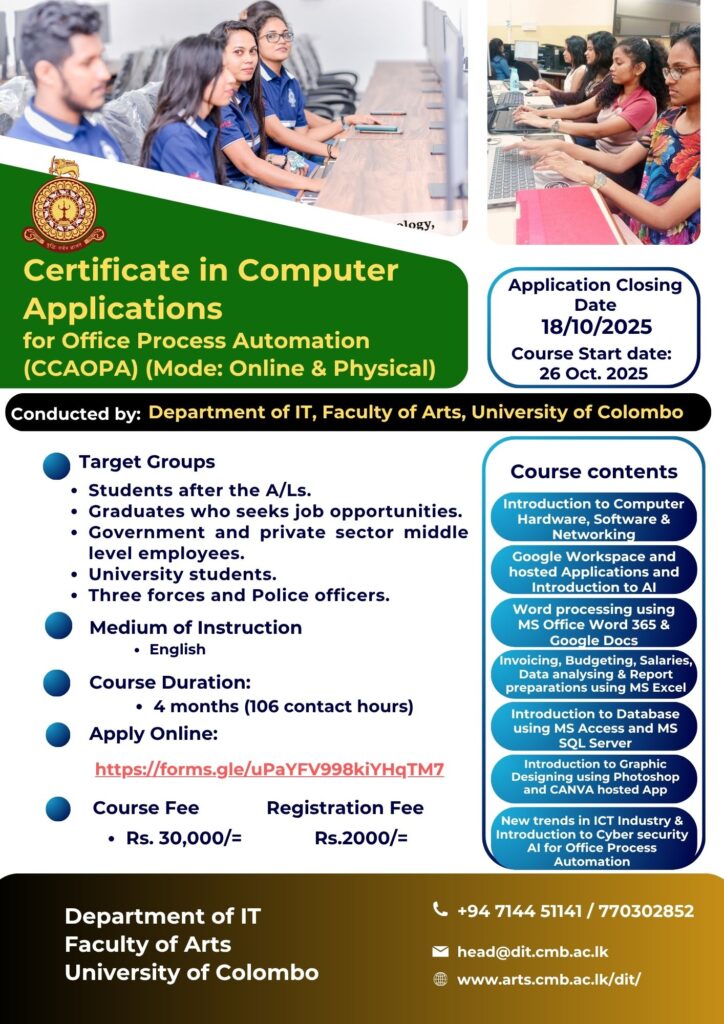 Apply soon! This online and on-site course conducted by the Department of IT is specially designed for fresh graduates, school leavers, and individuals seeking employment or promotion in their current positions. For Online registration click here