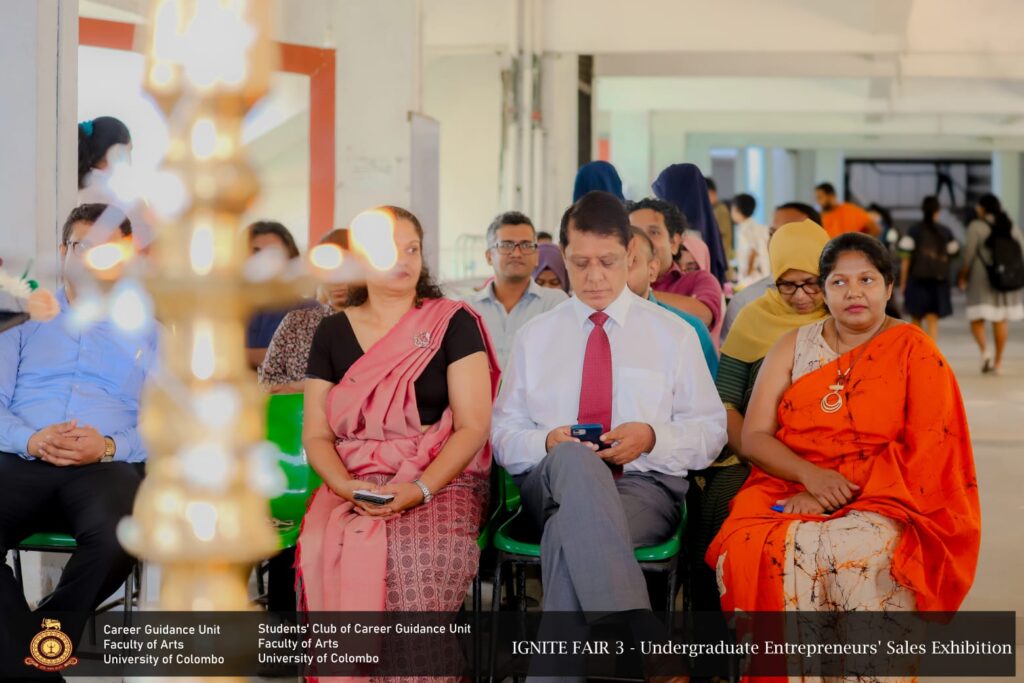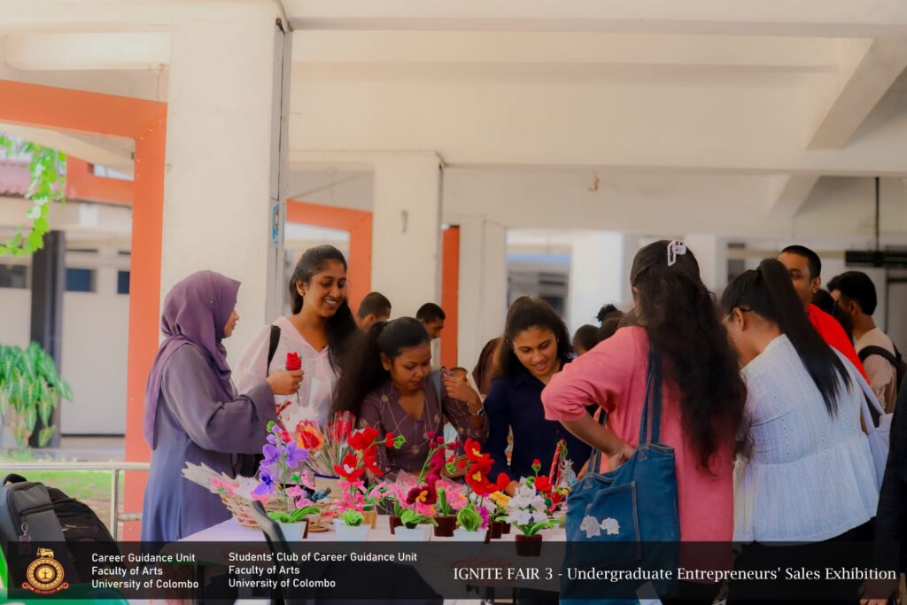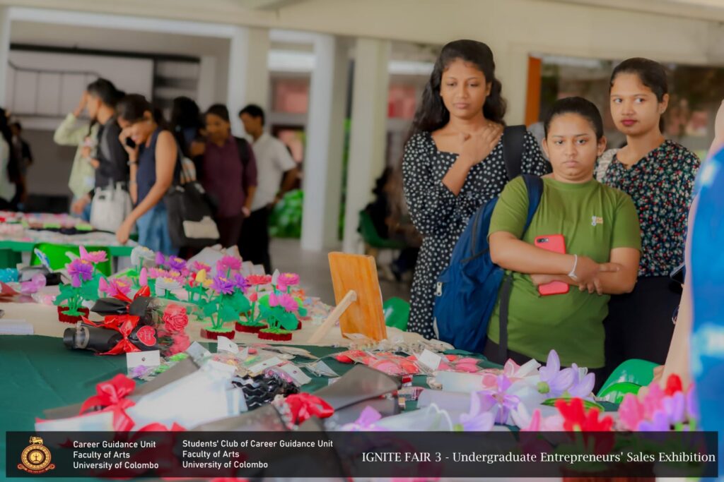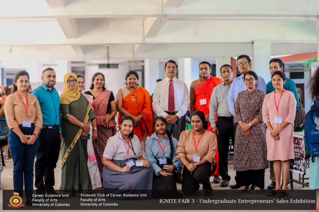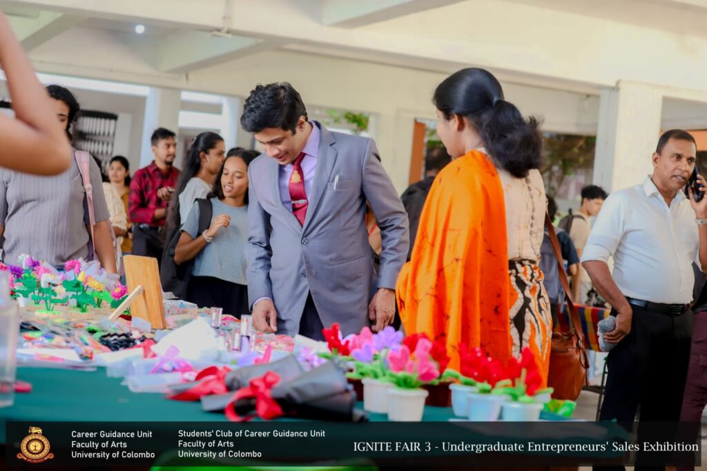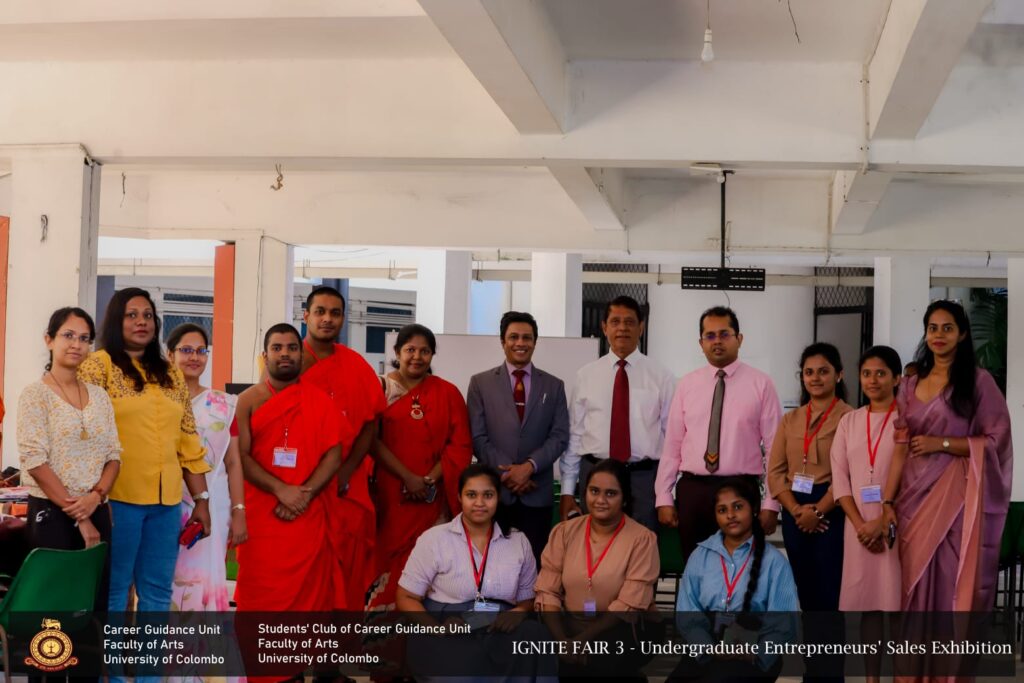 IGNITE FAIR – 3, the Undergraduate Entrepreneurs’ Sales Exhibition, was successfully conducted for the third time by the Career Guidance Unit of the Faculty of Arts in collaboration  with the Students’ Club of the Career Guidance Unit, University of Colombo. The event took place on 10 th February 2026, from 9.00 a.m. to 4.00 p.m., at the Faculty premises, featuring 27 undergraduate entrepreneurs representing all academic years.